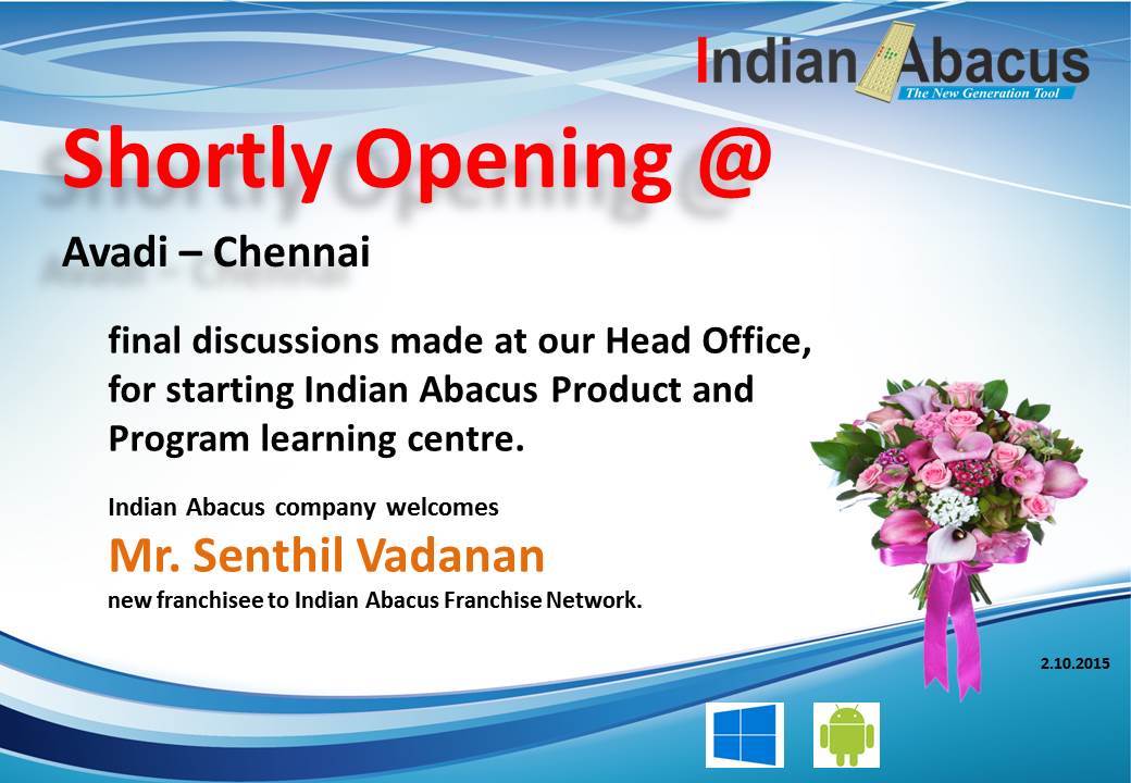 We are in the field of Abacus Education providing Indian Abacus Product and Mental Arithmetic Programme to the children of age group of 5 to 13 years, as a whole Brain Development Programme.